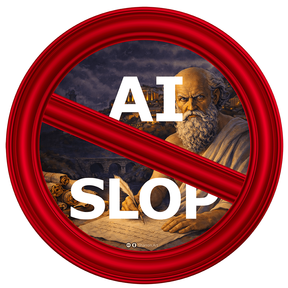 This sign is free to use in your projects, presentations, and environments as a stand for quality, authorship, and human-led thinking.